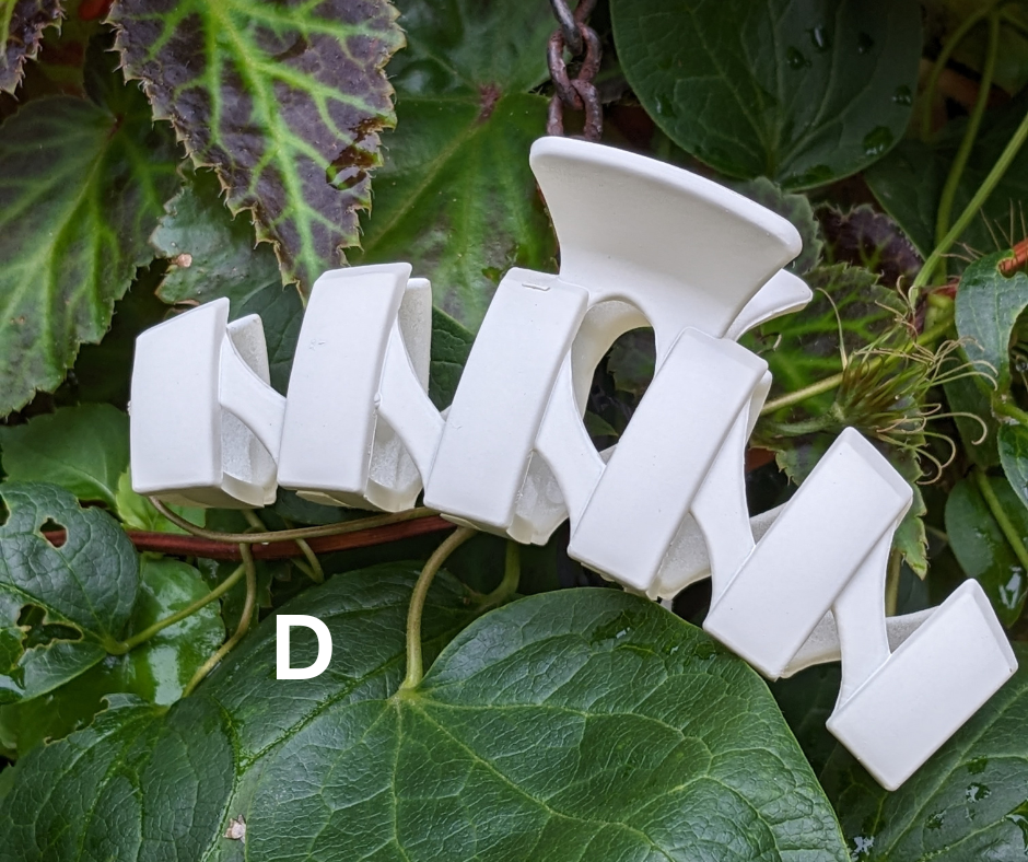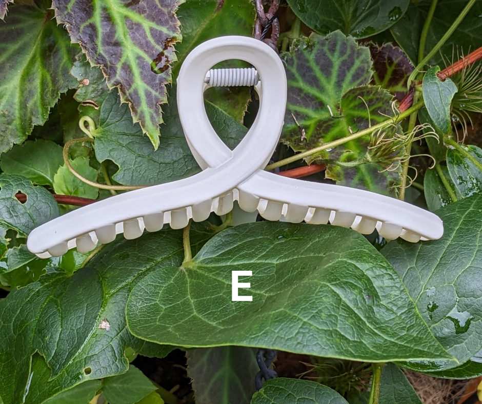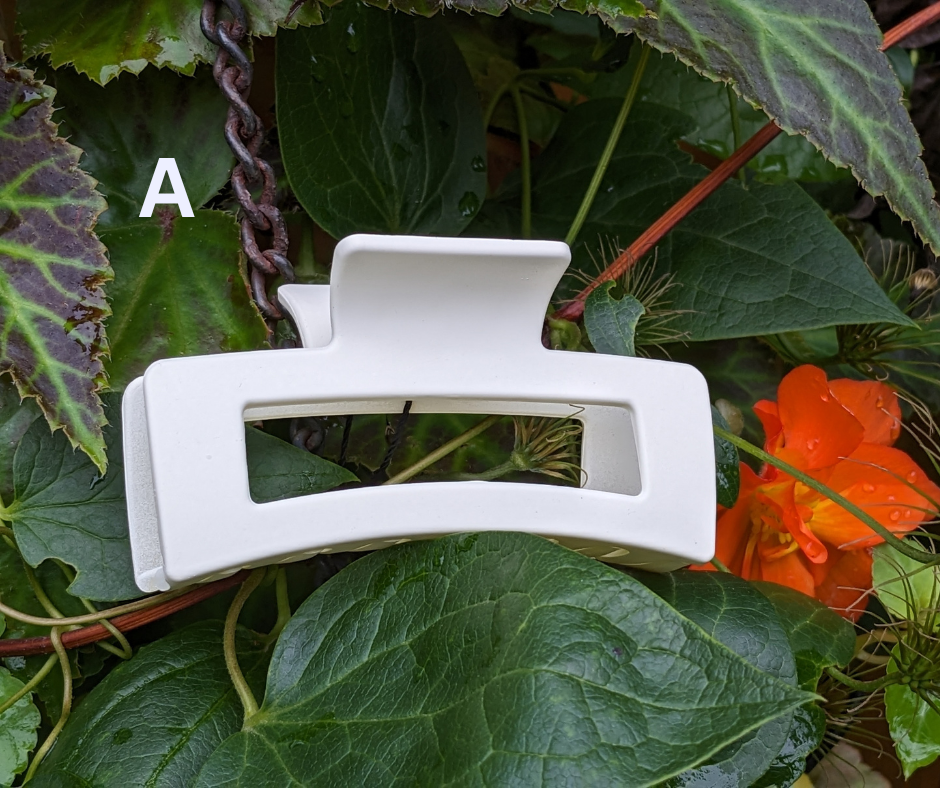 Keep your tresses tidy and fetchingly up off your face with one of these lightweight hair clips. There is a variety of shapes and sizes to meet your needs, all in neutral-ish matte earth tones of slate blue, gray, camel, deep taupe, cream, beige, and classic black, or shiny finish aqua or soft peach.